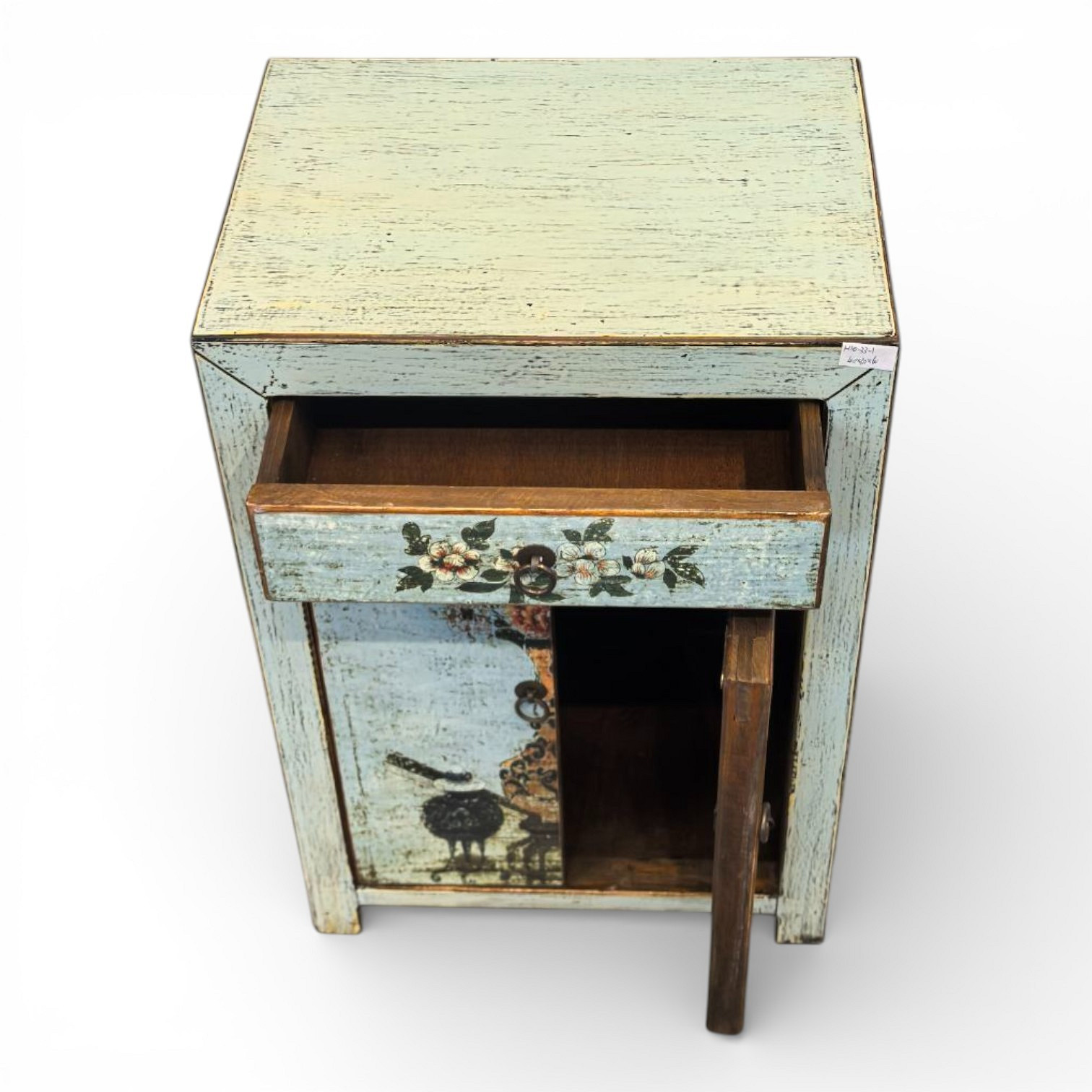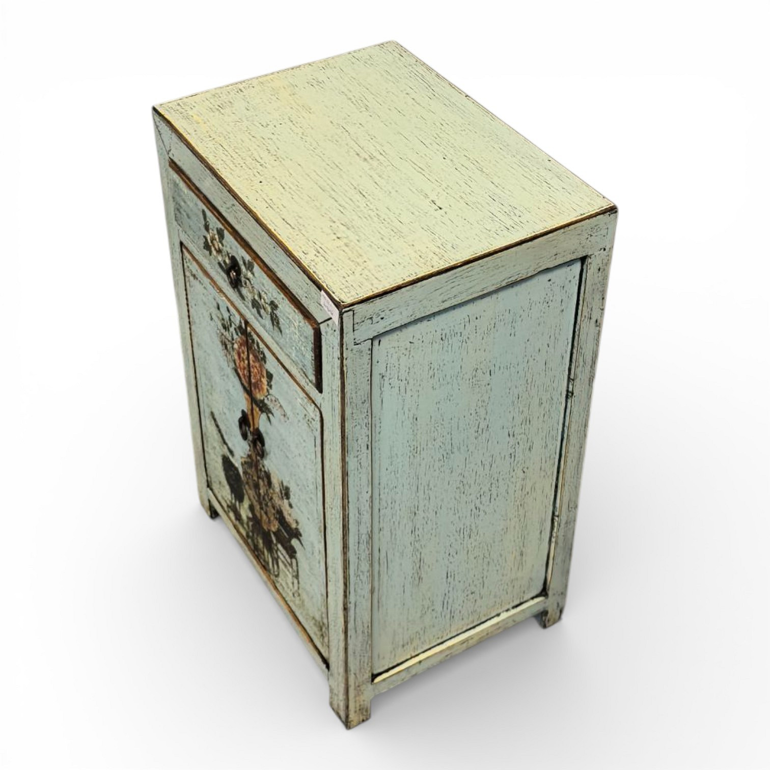 Kleiner Schrank mit 1 Tür und 1 Schublade, handbemalt